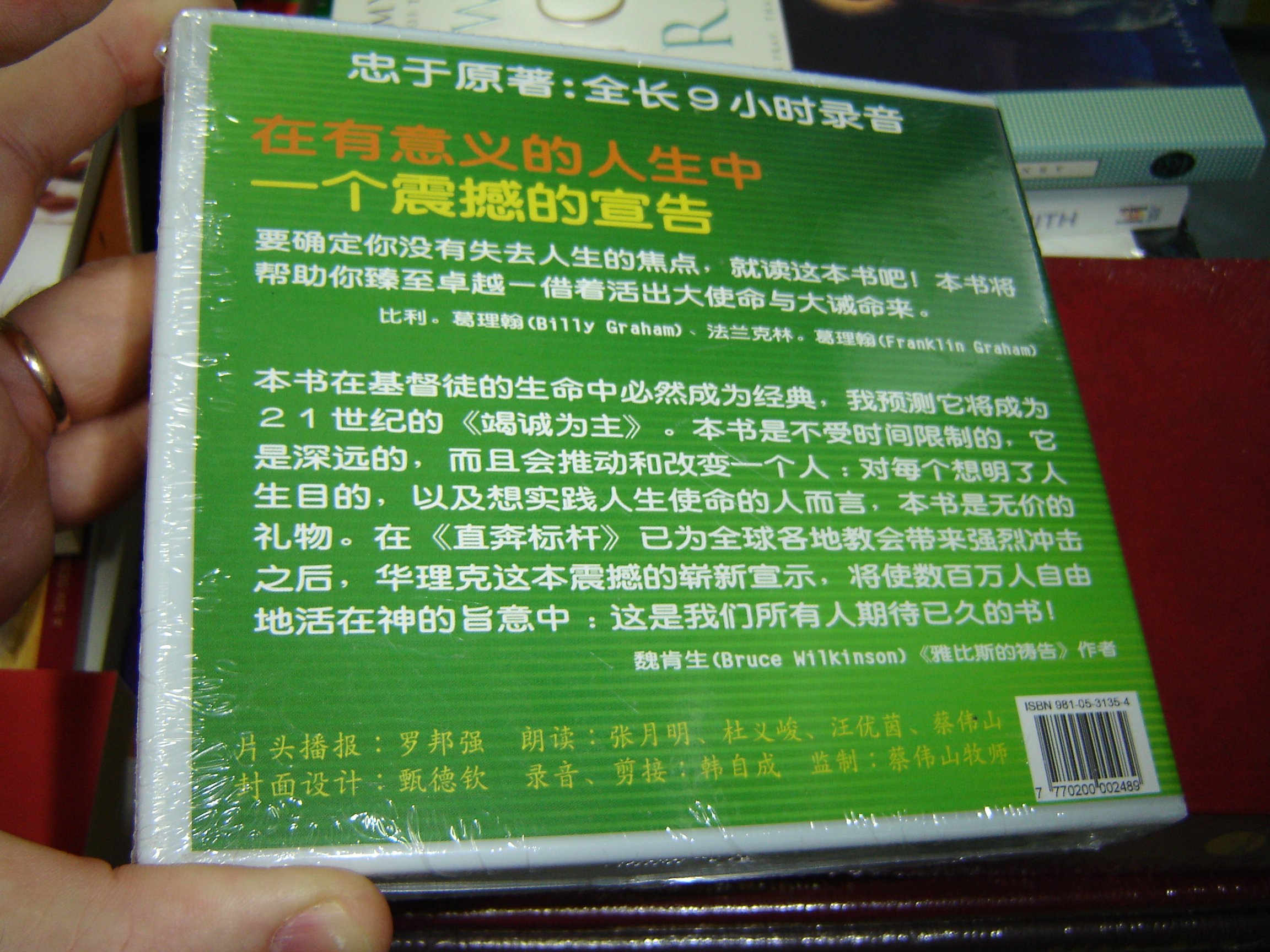 The Purpose Driven Life in Chinese on 9 Audio CD's / Chinese Language Edition / Reading of the whole book. 10 years ago, Rick Warren wrote The Purpose Driven Life, which became the bestselling hardback non-fiction book in history, and is the second most-translated book in the world, after the Bible. PDL has inspired and changed tens of millions of lives … more than any modern book. /// This is a great Christian product sourced from BIML - Bible In My Language, the leader in foreign language Bibles and outreach materials from Baltimore, Maryland in the USA. BIML stocks Bibles in more than 600 languages.