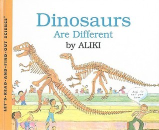 After reading all the books I did,I decided to read something simple. Dinosaurs are Different by Aliki. The book is a non fiction, intended for ages 4-8, and is also a picture book. The book illustrates different size dinosaurs and what the differences is in what each of them do. The book is a good book for a science lesson. It goes into some detail on the different types but not too far. It explains the different bone structures and what they eat. I think it is a great book for younger children.