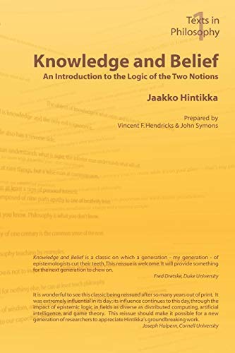 Knowledge and Belief An Introduction to the Logic of the Two Notions by Jaakko Hintikka Prepared by Vincent F. Hendricks & John Symons In 1962 Jaakko Hintikka published Knowledge and Belief: An Introduction to the Logic of the Two Notions with Cornell University Press. Almost every paper or a book on epistemic and doxastic logic that has appeared since then has referred to this seminal work. Although many philosophers working in logic, epistemology, game-theory, economics, computer science and linguistics mention the book, it is very likely that most have never literally had their hands on it, much less owned a copy. After a fourth printing in 1969, Knowledge and Belief went out of print and as many of us have found to our dismay, it has become increasingly difficult to find used copies at our local shops or online. It is our pleasure to provide the interdisciplinary community with this reprint edition of Knowledge and Belief. Knowledge and Belief is a classic on which a generation - my generation - of epistemologists cut their teeth. This reissue is welcome. It will provide something for the next generation to chew on. - Fred Dretske, Duke University It is wonderful to see this classic being reissued after so many years out of print. It was extremely influential in its day; its influence continues to this day, through the impact of epistemic logic in fields as diverse distributed computing, artificial intelligence, and game theory. This reissue should make it possible for a new generation of researchers to appreciate Hintikka's groundbreaking work. - Joseph Halpern, Cornell University