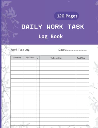 This is Daily Work Task Log Book For Employees and Freelance Workers. It measures 8.5 by 11 inches and has 120 pages. The Stander layout includes space to write the date, your tasks, start and end time, and total time spent on each activity. Overall, this simple task tracker book is ideal for employee time management.