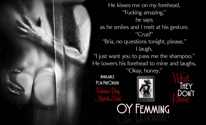 Characters: Brie has a lot of spunk, knows what she wants, I love that about her. Bryant is a wonderful best friend to have (in more ways than one). Then there is Cruz.....hmm, from the moment you meet him, he leaves you wanting more and more, in a mysterious but good way.