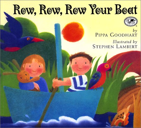 3. This book takes you through the adventure of two children who row their boat to shore and explore the jungle. There they meet lots of animals such as elephants, monkeys, and a lion. Each page of the song is a stanza that goes to the tune of "Row, Row, Row Your Boat".