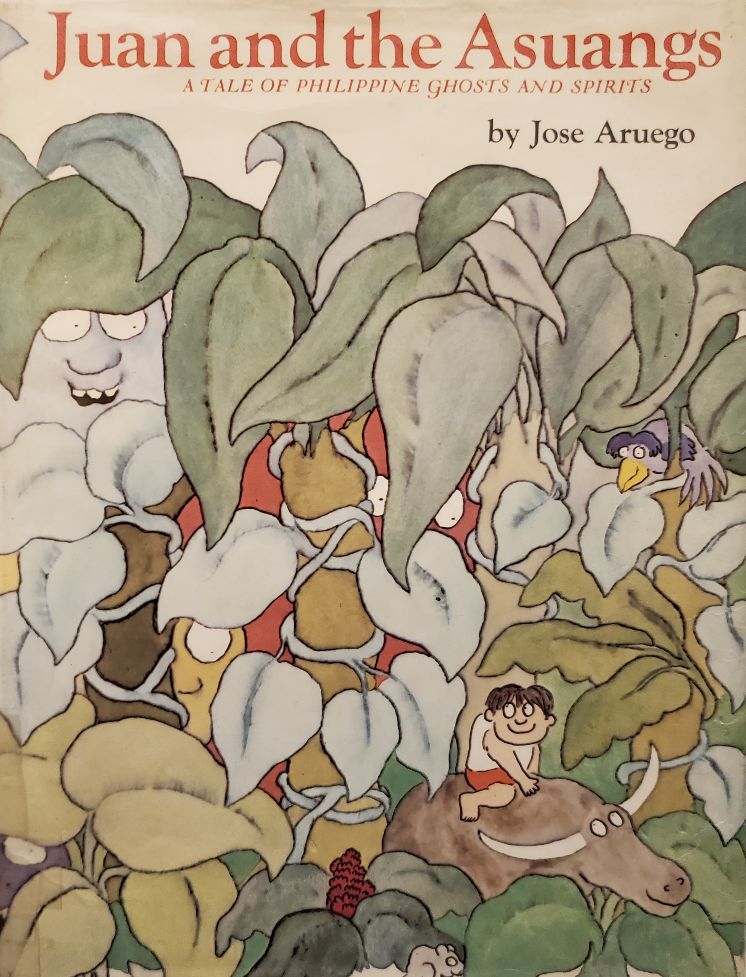 Falling asleep on the back of his carabao one afternoon, a young Filipino boy finds himself transported into the nearby jungle in this charming picture book from Filipino-American author/artist Jose Aruego. There he must confront the asuangs—the ghosts and spirits of the Philippines—that his Lola (grandmother) had warned him about. Guided by her advice on how to conduct himself, Juan manages to safely get through encounters with a Kapre (a sort of cigar-smoking tree giant), a Tianak (a vampiric creature that disguises itself as a baby), and a group of Batibats (bamboo spirits). Eventually he finds himself confronting the fearsome Mananangal, the predatory creature that has been stealing all of the dogs and chickens in his barrio. Able to separate itself from its lower half, the Mananangal is off raiding when Juan arrives, and that clever boy (who knows to listen to his Lola!) devises a way to injure it, upon its return, and thereby save all the captive animals...