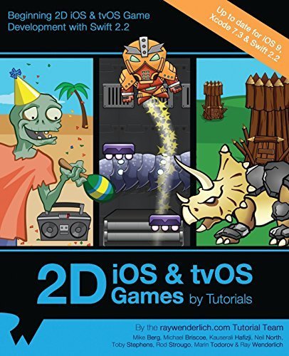 Learn How to Make 2D iOS and tvOS Games! Updated for Xcode 7.3 and Swift 2.2. Learn how to make iOS and tvOS games in Swift, using Apple's built-in 2D game Sprite Kit. Through a series of mini-games and challenges, you will go from beginner to advanced and learn everything you need to make your own game! [Screenshots of 6 Zombie Conga, Cat Nap, Drop Charge, Dino Defense, Delve, and Circuit Racer] By the time you're finished reading this book, you will have made 5 complete mini-games, from an action game to a puzzle game to a tower defense game! Topics Covered in 2D iOS & tvOS Games by Tutorials Get started quickly and get your images onto your screen. Manual Move sprites manually with a crash course on 2D math. Learn how to move sprites the "easy way" using Sprite Kit actions. Scenes and Make multiple screens in your app and move between them. Use Sprite Kit's built-in camera to control your view. Learn how to display text for lives, score and more in your game. Learn how to port your game to the Apple TV and work with the remote. Add realistic physics behavior into your games. Beyond Add video nodes, core image filters, and custom shapes. State Learn about GameplayKit's state machine support in iOS 9. Particle Add explosions, star fields, and other special effects. Adding "Juice" Take your game from good to great by polishing it until it shines. Entity-Component Use GameplayKit's new architecture for max reusability. Make your characters move using GameplayKit's new pathfinding support. Tile Make games that use tile maps. And much more, Randomization, procedural levels, game controllers, and 5 downloadable chapters!