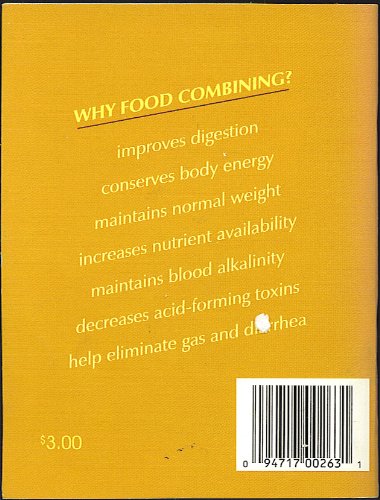 How to get the most from your food. Why food combining? Improves digestion; conserves body energy; maintains normal weight; increases nutrient availability; maintains blood alkalinity; decreases acid-forming toxins; helps eliminate gas and diarrhea A small but thicker, 64-page book measuring 4 1/4 inches X 5 1/2 inches.