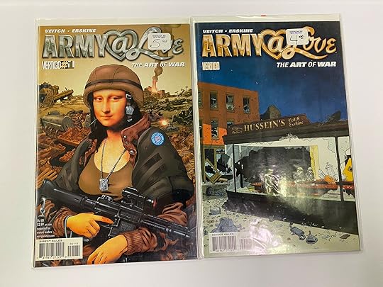 Army@Love could have benefitted from a shorter length and tighter focus. Like the Middle Eastern war it's commenting on, it's grown into a self-parody. I don't think Veitch pulled any punches in his commentary but he did run out of breath. Still, I enjoyed Army@Love but not in the form it was originally intended. I really liked it because of the funny melodrama and for seeing the artistic collaboration between Veitch and inner Gary Erskine. I don't think Veitch's art has ever looked better. It's too bad the story only required they draw the same small core of characters and military vehicles over and over. As much as I enjoyed it, it seems the art just like the story was destined to repeat itself without really adding anything new to the mix.