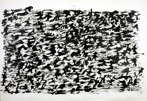Many of Michaux’s work in this “style” are reminiscent of Pollock, and were executed around the same time, perhaps a bit later, but they are in no way derivative, or even related. Pollock was a painter who painted with his eye and his body, and maybe a little bit of mind. Michaux was a voyager through consciousness who painted/drew with his mind and his nervous system. However much he succeeded in escaping from the confines of the intellect, the intellect is still where his roots were, and drawings such as this are like manifestations of his intellect’s unconscious root system. An X-ray of how his intellectual awareness permeated his body and expressed itself through his hand.