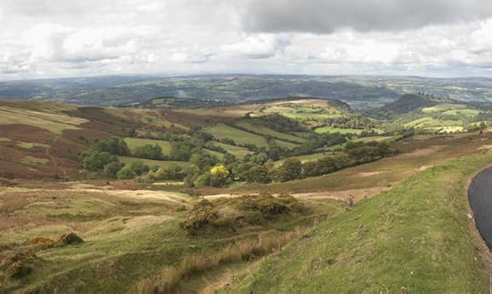 While walking the length of Offa's Dyke: "As we gain height, clouds close in, rain spits, sheep scatter. Heather smothers the tops and the mountain falls away on both sides. Nowhere can there be a clearer sense of walking along a frontier than on the Hatterall Ridge. Hang-gliders or suicides have a clear choice up here: to hurl themselves into England or into Wales. National temperament seems written into the landscape. To the right, England exudes a rolling, self-satisfied contentment while Wales retreats towards the horizon in a series of wild convulsions".
