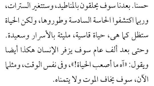 TUZENBAKH. Well? When we are dead, men will fly in balloons, change the fashion of their coats, will discover a sixth sense, perhaps, and develop it, but life will remain just the same, difficult, full of mysteries and happiness. In a thousand years man will sigh just the same, "Ah, how hard life is," and yet just as now he will be afraid of death and not want it.