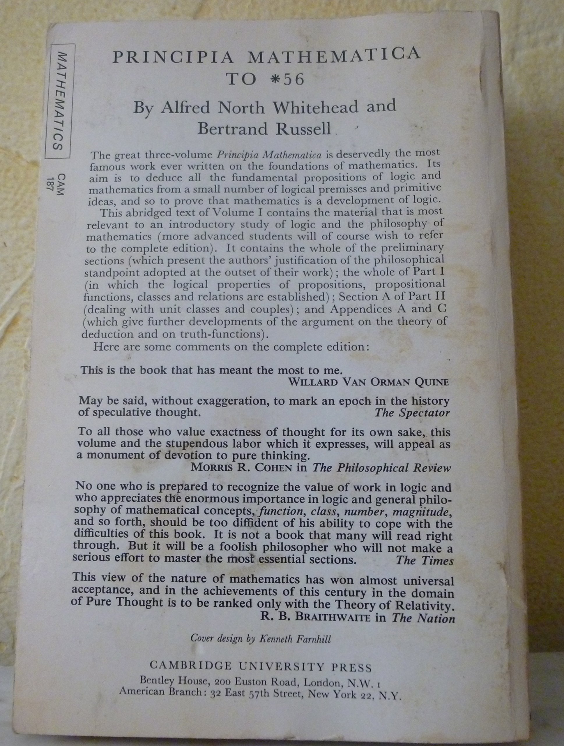 I once bought a huge stack of used Dover books cheap, and the guy tried to sell me the Principia Mathematica along with it... it was slightly faint with the typesetting, but for 40% off i decided sure i'll take the 3 volume monster home