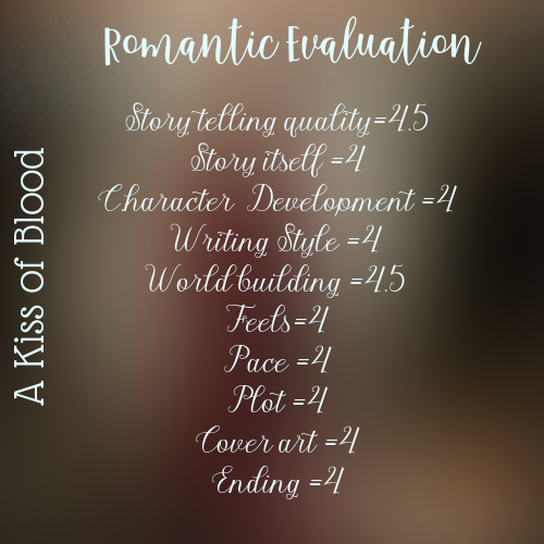 A Kiss of Blood can only be described as Dark, Gritty with a hint of romance and it is one of the best from its genre. It was fast pace and it will keep you intrigued the whole time. If dark and gritty is your style, then this series is worth your time. Though is probably not needed, I do recommend reading Vamp City which is the first book of this series.