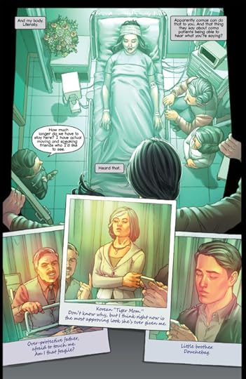 I was disappointed with this one. I really wanted to like it more than I did. The premise seemed promising--a young woman is mysteriously attacked and ends up in a coma. In this coma she meets people and slowly begins to adjust to her predicament. Meanwhile, her friends and family come and go and some mysterious figures seem to have some sort of plot.