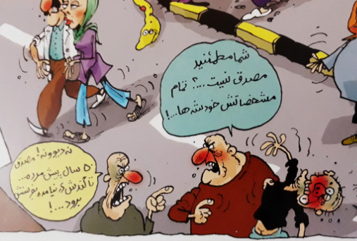 این قسمتی از یک صفحه است که در آن کسانی که چهار شنبه سوری را پاس می دارند را به صورت اراذل و اوباش به تصویر کشیده است
