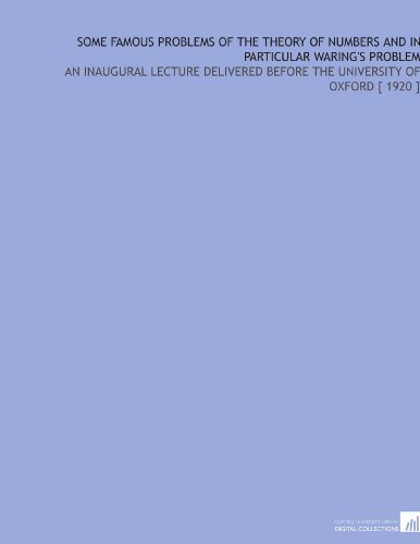 Some Famous Problems of the Theory of Numbers and in Particular Waring's Problem: An Inaugural Lecture Delivered Before the University of Oxford [ 1920 ]