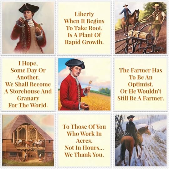 This book focuses on George Washington's agricultural pursuits and the advancements he made in farming. I first learned of them after visiting Mount Vernon, so if you can't visit, this book is a nice alternative. The illustrations of his grounds are pretty accurate.