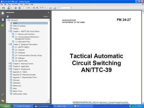 This manual is one of several covering the planning for and the use of Tri-Service Tactical Communications (TRI-TAC) equipment. TRI-TAC equipment refers to tactical communications systems equipment designed for use by one or more of the military services. The Army joins the other military services in planning for, fielding, and using these equipments in their tactical communications systems. This manual is the basic reference document for the use of the Automatic Telephone Central Office AN/TTC-39()(V), known as a circuit switch, and for the AN/TITC-39A known as the nodal control circuit switch. References in this manual to the AN/TTC-39 generally apply to both unless otherwise noted. The manual does not replace technical manuals or systems engineering manuals for the AN/TTC-39. The purpose of the manual is to translate doctrine and detailed technical data into practical guidance for planning and operating the circuit switch, The manual includes a full description of the AN/TTC-39. Pending doctrine development for mobile subscriber equipment, this manual describes the use of the AN/TTC-39 at both corps and theater levels.
