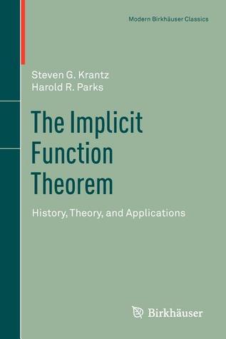 The implicit function theorem is part of the bedrock of mathematical analysis and geometry. Finding its genesis in eighteenth century studies of real analytic functions and mechanics, the implicit and inverse function theorems have now blossomed into powerful tools in the theories of partial differential equations, differential geometry, and geometric analysis. There are many different forms of the implicit function theorem, including (i) the classical formulation for C k functions, (ii) formulations in other function spaces, (iii) formulations for non-smooth function, and (iv) formulations for functions with degenerate Jacobian. Particularly powerful implicit function theorems, such as the Nash–Moser theorem, have been developed for specific applications (e.g., the imbedding of Riemannian manifolds). All of these topics, and many more, are treated in the present uncorrected reprint of this classic monograph. Originally published in 2002, The Implicit Function Theorem is an accessible and thorough treatment of implicit and inverse function theorems and their applications. It will be of interest to mathematicians, graduate/advanced undergraduate students, and to those who apply mathematics. The book unifies disparate ideas that have played an important role in modern mathematics. It serves to document and place in context a substantial body of mathematical ideas.