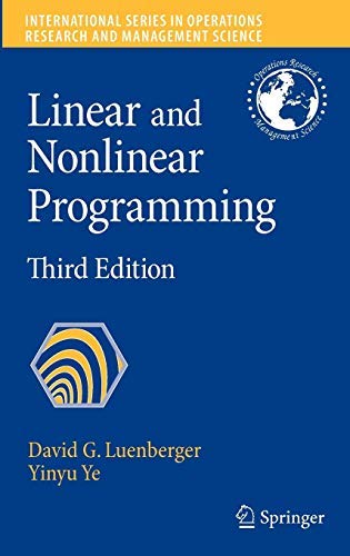 Linear and Nonlinear Programming (International Series in Operations Research & Management Science) by Luenberger, David G., Ye, Yinyu 3rd edition (2008) Hardcover
