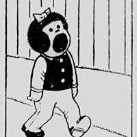 I had never heard of either Blegvad or Leviathon when I happened upon this book, but as I flipped through it, I was taken fairly quickly by its bizarre creepiness. The protagonist, Levi (short for Leviathon--who would name their child that?), outdoes earlier bald child/baby comics characters such as Mickey Dugan or Henry by lacking any facial features at all. His companions are a talking cat, rendered, usually, in a more realistic style than Levi, and his stuffed bunny (which does not talk, or indeed do anything). The strip occasionally offers short continuities but more frequently is a gag strip, though the gags at times make even Gary Larson look tame. The strip mixes styles liberally, is at times whimsical, creepy, surrealistic, existential, nihilistic, and meta. In short, apart from the continuing characters (and Blegvad's fondness for groaner puns--a bonus for me when I actually read the book, as I hadn't spotted any of those in the bookstore), the strip can go pretty much anywhere. Levi even dies at least once, with no ongoing consequences. Unfortunately, this is the only collection of the strip, and I am pretty sure it is incomplete. I'd love to see more. While this work rarely inspired belly laughs, or even chuckles, it it a brilliant example of comics art.