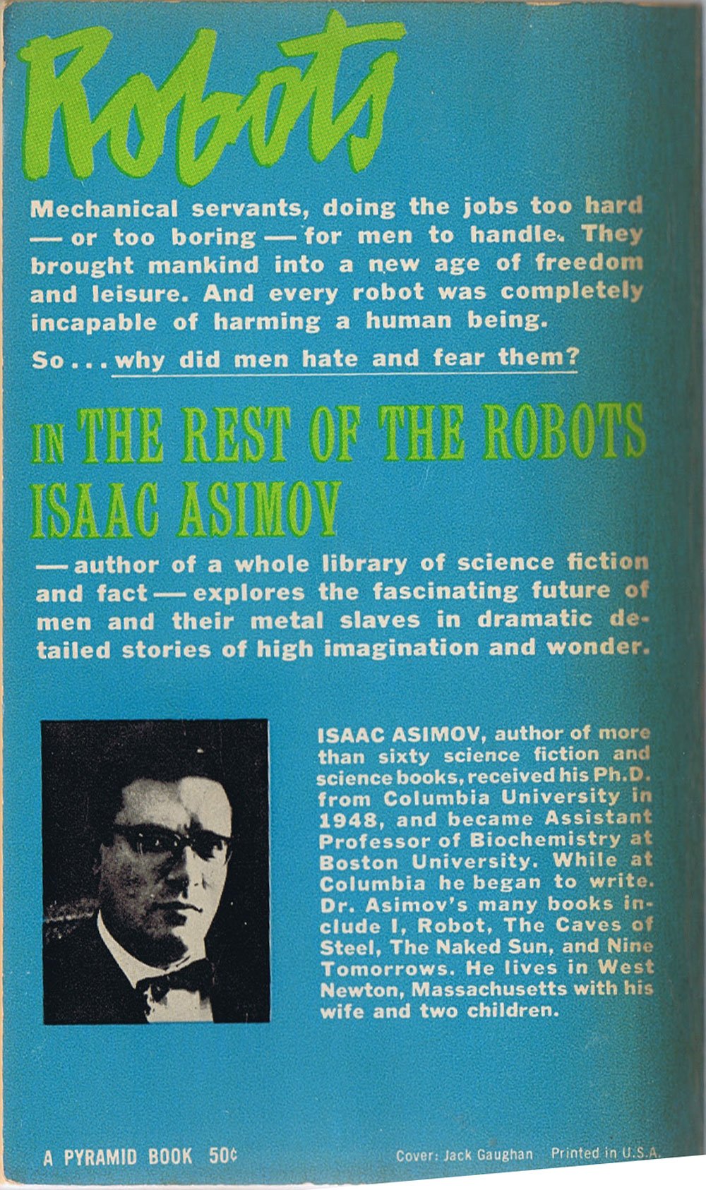 First published in Britain in 1963, this collection contains some of the most classic robot stories ever written in science fiction and represents, if you like, the grand-daddy of robot lore from which all other robot stories were begat.
