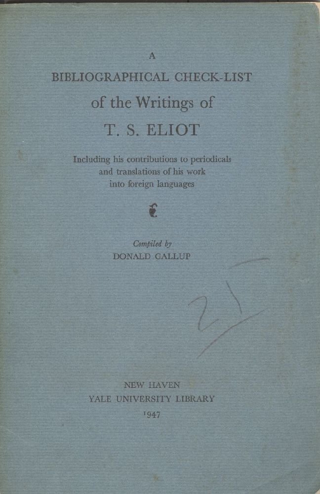 A bibliographical check-list of the writings of T.S. Eliot. Including his contributions to periodicals and translations of his work into foreign languages.