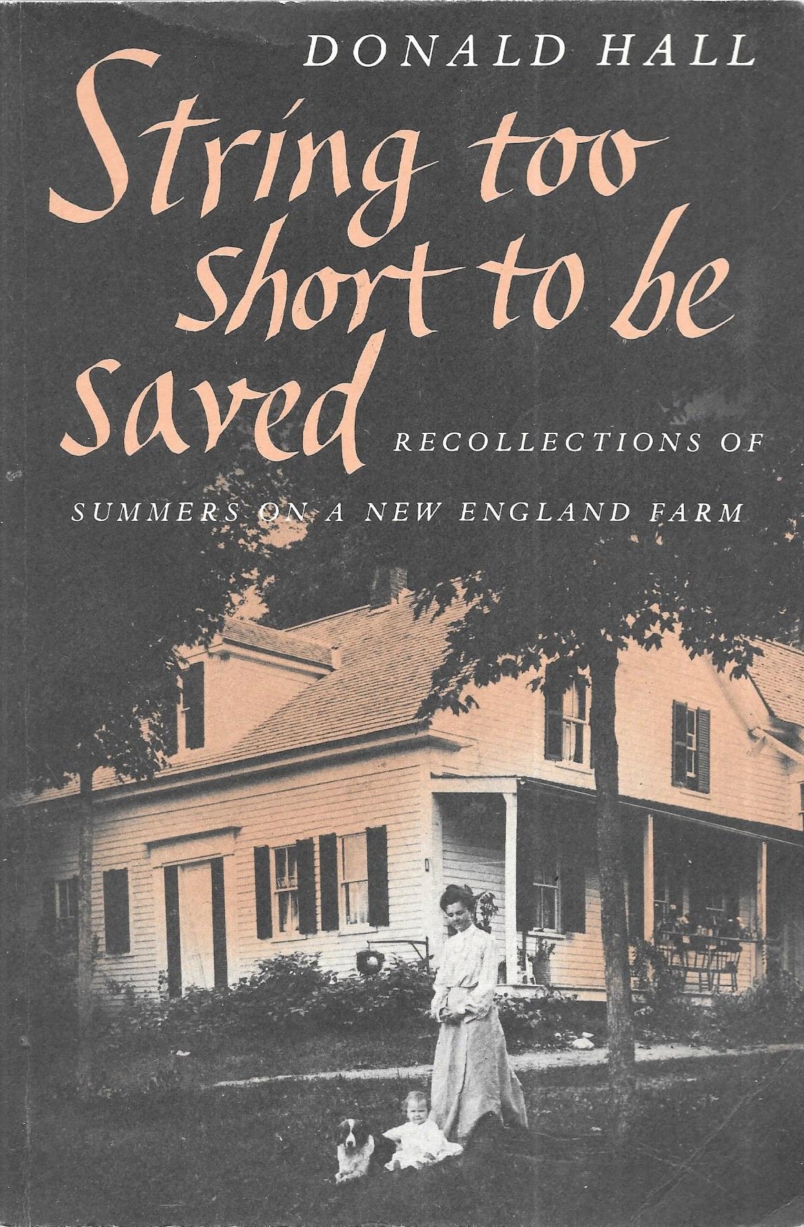 The title comes from a box discovered by the author while he was clearing the attic of his grandparent's New England farm house. The box was full of tiny pieces of string and was labeled "String too short to be saved." That example of austerity and frugality,is found throughout this collection of stories that recall the author's summers on his grandparent's farm in the 1930s and 1940s. The stories also reflect the rural New England work ethic, self reliance, and taking care of family and neighbors. But they are not tomes, they are fun stories that simply reflect those values. One story is about the young boy hiking a long ways to go up a steep mountain with his grandfather to pick wild blueberries and the exhausting trek down while carrying the heavy load. The boy describes his thirst after his water was gone and the sheer joy of drinking from a tucked away spring on the way down. During the hike the grandfather recalls stories of the mountain and its people and the author's way of incorporating them makes the reader feel as if they were on the hike listening to the grandfather reminisce. Each story is connected to the others and they all use that device. This memoir was published in 1960 and includes stories that were written and published before that. What helps make this memoir work is that the author keeps the focus on the New England past, it was only in the epilogue and a subsequent google search that I learned of Donald Hall's education and success as a professor, poet and writer
