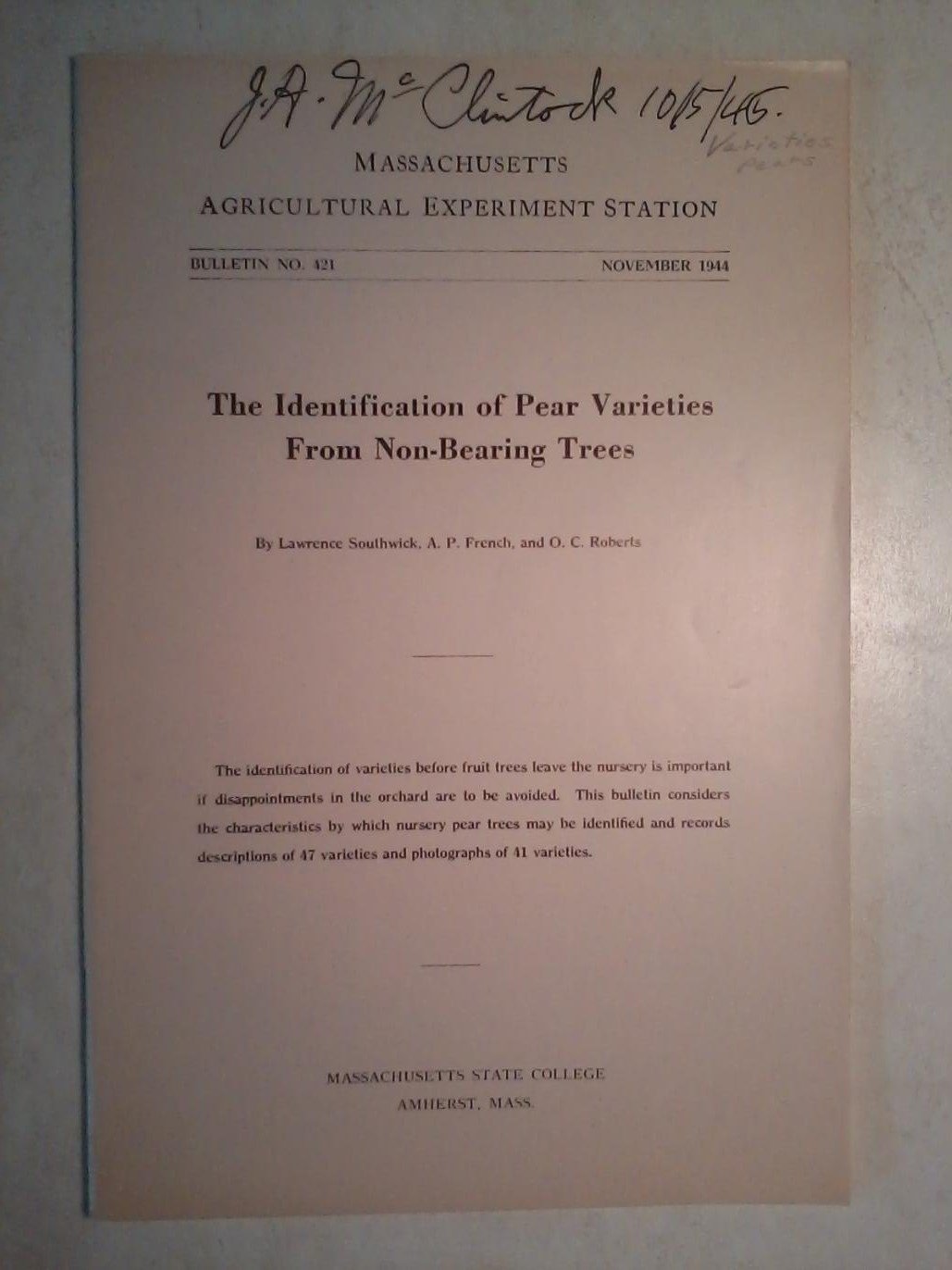 Bulletin acquainting the reader with characteristics of young, non-bearing pear trees which are utilized in the identification of varieties.