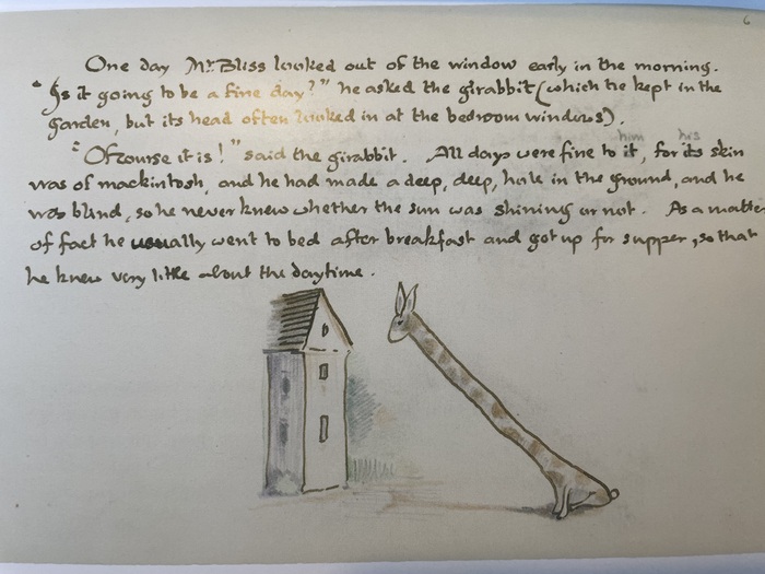 Mr. Bliss wasn't published during Tolkien's lifetime. He submitted it to his publishers as a balm to readers who were hungry for more from Tolkien after the success of The Hobbit. The ink and coloured pencil illustrations would have made production costs prohibitively expensive. Tolkien agreed to redraw the pictures in a simpler style, but then found he didn't have time to do it.