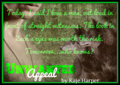 I really am enjoying this series and this book was another great read. I enjoyed Unwanted Appeal. It's shorter than the first two books, but it works well as book 3 and feels like an essential part of the story. In Unwanted Appeal two different wolves come to Aaron's pack in two different ways, for each wolf Aaron has to decide whether to trust them and let them join the pack or not. It was interesting to learn more about these two new wolves and see how Aaron handled the situation. He also has to struggle again with his urge to change the pack and to hold on to their past ways of doing things. He is still hiding his sexual orientation as well as his romance with Zach. I had wondered if that would change in this book and I have to say I liked how that was handled, it felt appropriate and realistic.