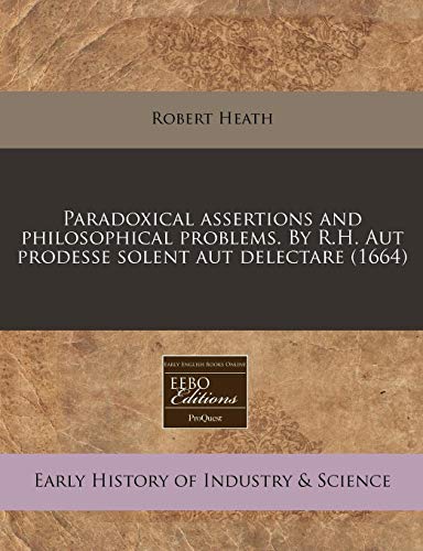 This book represents an authentic reproduction of the text as printed by the original publisher. While we have attempted to accurately maintain the integrity of the original work, there are sometimes problems with the original work or the micro-film from which the books were digitized. This can result in errors in reproduction. Possible imperfections include missing and blurred pages, poor pictures, markings and other reproduction issues beyond our control. Because this work is culturally important, we have made it available as part of our commitment to protecting, preserving and promoting the world's literature. ++++The below data was compiled from various identification fields in the bibliographic record of this title. This data is provided as an additional tool in helping to insure edition identification: ++++"Paradoxical assertions and philosophical problems. By R.H. Aut prodesse solent aut delectare"Heath, Robert, fl. 1636-1659.R.H. = Robert Heath.In two parts; part 2 has caption title: "Philosophical problems" and separate pagination; register is continuous.Includes contents table.Imperfect: signature F5 cut out.[6], 72, [2], 36 p.London: printed for Iohn Crooke, and are to be sold at the Ship in Saint Pauls Church-yard, 1664.Wing (2nd ed.) / H1341AEnglish++++This book represents an authentic reproduction of the text as printed by the original publisher. While we have attempted to accurately maintain the integrity of the original work, there are sometimes problems with the original work or the micro-film from which the books were digitized. This can result in errors in reproduction. Possible imperfections include missing and blurred pages, poor pictures, markings and other reproduction issues beyond our control. Because this work is culturally important, we have made it available as part of our commitment to protecting, preserving and promoting the world's literature.