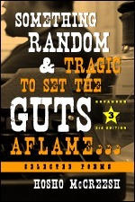 Originally released by Mockfrog Design Press as part of their New Century Poets Series 2 collection, and out of print since 2002, Mary Celeste Press is proud to release this year 2013, 3rd expanded edition of ‘Something Random & Tragic To Set The Guts Aflame...’