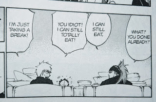 I love these idiots and their stupid faces. Lol. I just love the humor in this series—it always makes me laugh. Anyway, these idiots are onto the next step in their... training? I guess? After bathing and healing they’re off to get their strength back by eating some yummy food. There’s more to it than that... One of the Squad Zero reapers has this cool ability relating to the food she cooks and her energy and whatnot, and I’m just really enjoying learning about Squad Zero because they have some really cool abilities.