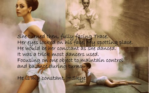 Skye is opening a ballet studio and she is going to rebuild her career in dance. She may not be in the spotlight but she is doing what she loves. Skye finds the perfect studio and with Trace's help they get it ready for her students. Sky still bears the scars from her tragic car accident that ended her career. She is still suffering nightmares from her trauma (in book one). Trace vows to keep her safe always.
