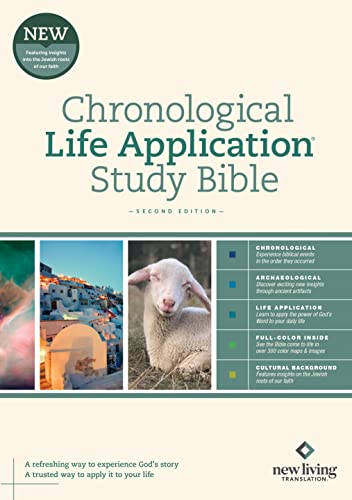 Special features of the NLT Chronological Life Application Study Bible, Second Edition includes the arrangement of the Bible text in chronological order and special section introductionsArchaeological key places, artifacts, and ideas are explained with illustrations to give additional contextLife Application Study Bible notes, profiles, maps, charts, timelines, harmony of the Gospels, and indexesUpdated with insights from Jews for Jesus on the Jewish roots of our faith.Now available in Heritage Oak Brown, Slate Blue, and Ebony Leaf LeatherLike editions.