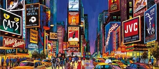 "Around us, the entire span of Times Square was ablaze in reds and greens and every color imaginable. It sang from the skies that even in their shrouded haze of suggestive gray-cotton clouds were penetrated by that hungry, energized blanket of life."