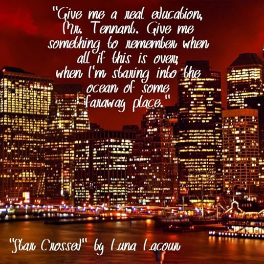 'I knew who the real victim was, and it wasn't me. If there were some fragment of this inevitable explosion that wrote out my name in blood across the tracks, I would smear it and cry hearsay. Mr. Tennant was the victim. Yet I kissed him continuously. I ran my tongue along his neck and listened to him gasp and moan with a timid noise. I had to have him, and I had to win. I had to win, but I had to have him.'