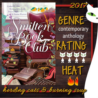 Smitten Book Club is the third book in the "Smitten" series. I have to say, this has been one of the most unique series I've seen. All of the books are a collection of novellas from four authors with different main characters - and yet there's one central theme/story that binds them together.