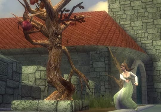 “The castle had a strangeness about it--places where torchlight flickered one way while the shadows it cast scampered another; stairs ended in opposite directions without ever turning."
