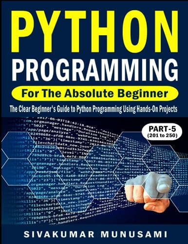 Dear Readers! Are you interested in learning Python programming? Do you think Python programming is difficult to learn? Are you regretting spending too much time and too much money to learn the Python programming language? Want to learn Python programming code quickly and easily? Do you want to learn Python programming and get a high paying job? Are you looking for the best book to learn Python programming? If yes, then this book is definitely for you. In this book you can learn about Python basic programming. This book is especially useful for beginners and kids who want to learn Python programming Code. This book will be very useful for you to know the Codes of Python basic programs without anyone's help. After reading this book (Python Programming for the Absolute Beginner (Part-5) The Clear Beginner's Guide to Python Programming Using Hands-On Projects) you will know about the following 50 programs. After reading this book you will know about the following 50 programs. 201. Check if a number is a prime number 202. Multiply corresponding elements of two lists 203. Find the number of words in a string 204. Calculate the product of all elements in a list 205. Count the number of uppercase letters in a string 206. Sort a list of dictionaries by a specific key in descending order 207. Remove the nth occurrence of a specific element from a list 208. Calculate the factorial of a number using recursion 209. Check if a string contains only digits 210. Calculate the sum of all even numbers in a list 211. Shuffle a list randomly 212. Check if two strings are anagrams 213. Find the index of the maximum element in a list 214. Find the least common multiple (LCM) of two numbers 215.Remove all occurrences of a specific element from a list 216. Check if a string is a valid pangram 217. Calculate the sum of the digits of a number 218. Check if a list contains duplicate elements 219. Find the index of the first occurrence of a substring in a string 220. Find the sum of all odd numbers in a list 221. Check if a year is a leap year 222. Calculate the power of a number using recursion 223. Convert a list of strings to a single string with comma-separated elements 224. Find the index of the last occurrence of an element in a list 225. Check if a string is a valid email address 226. Reverse a string without using built-in functions 227. Remove duplicate elements from a list while preserving the order 228. Convert a decimal number to binary representation 229. Find the index of the minimum element in a list 230. Generate a random password of a given length 231. Check if a list is sorted in ascending order 232. Calculate the sum of the first N natural numbers 233. Find the index of the second occurrence of an element in a list 234. Remove all whitespace characters from a string 235. Check if a list is a palindrome 236. Calculate the number of days between two dates 237. Check if a string is a valid URL 238. Find the maximum consecutive sum in a list 239. Check if a string is a palindrome 240. Convert a binary number to decimal representation 241. Check if a list is a subset of another list 242. Find the number of vowels in a string 243. Calculate the sum of the first N prime numbers 244. Find the index of the smallest element in a list 245. Capitalize the first letter of each word in a string 246. Find the mode of a list (most frequently occurring element) 247. Check if a string is a valid palindrome ignoring non-alphanumeric characters 248. Calculate the sum of the digits of a factorial of a number 249. Remove all punctuation from a string 250. Find the largest prime factor of a number Don't wait any longer! Scroll up and click "Buy Now" to learn Python programming and land your dream job!