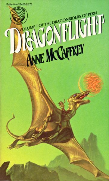 Anne McCaffrey’s first story was published by Sam Moskowitz in Science Fiction + Magazine and her first novel was published by Ballantine Books in 1967. By the time the three children of her marriage were comfortably in school most of the day, she had already achieved enough success with short stories to devote full time to writing. Her first novel, Restoree, was written as a protest against the absurd and unrealistic portrayals of women in s-f novels in the 50s and early 60s. It is, however, in the handling of broader themes and the worlds of her imagination, particularly the two series The Ship Who Sang and the fourteen novels about the Dragonriders of Pern that Ms. McCaffrey’s talents as a story-teller are best displayed.
