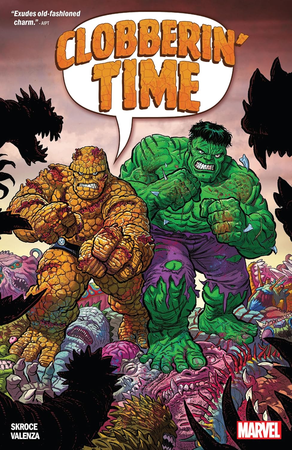 Brace yourself for the most clobber-filled title on the shelves! The talented Steve Skroce teams Ben Grimm with heroes from across the Marvel Universe! It's the Thing's greatest adventure yet, with or without the Fantastic Four. And it begins with Ben and his incredible sparring partner, the Hulk, stranded on a distant alien world where the duo must protect an ancient people against legions of Deviant hordes - and ultimately face the wrath of a Celestial! Then, Ben teams up with Wolverine on Krakoa, and Doctor Strange crashes a Grimm family reunion. But when the Thing is banished to the bottomless pit of interstitial space between realities, the most unlikely ally of all awaits. Can Ben fight all his instincts and declare "Clobberin' Time" alongside none other than Doctor Doom?!