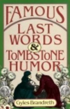 A fast and interesting read. I much preferred the last words to the tombstone humor. The epitaphs were almost all corny and humorous. The last words were, being largely unscripted, much more interesting... Some boring, some ironic or funny, some haunting.