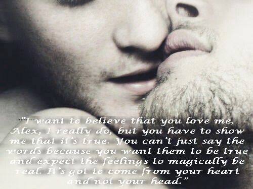 "I know we fight and argue and we hurt each other, but I also know that what we have is real and I'm not giving up on it. Alex, I love you so much and if you love me like you say you do, you won't run away from me, away from us. Love doesn't run; it stays and fights for what’s right. It's tough and it doesn't give up... Leaving is taking the easy way out, and I know you. You never take the easy way. You're stubborn, pig-headed and you fight for what you want. Don't you want me anymore? Don't you love me?"