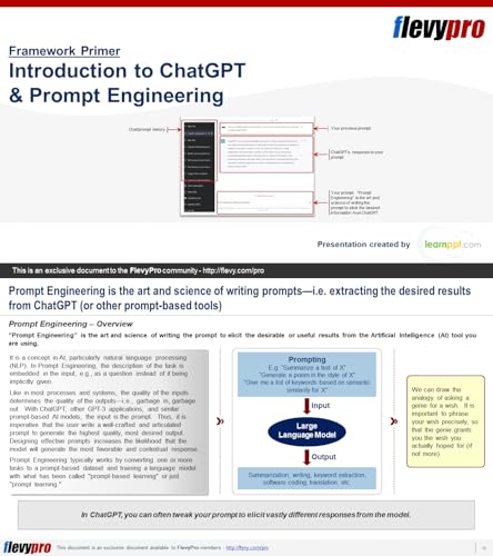 This PowerPoint presentation is a primer to ChatGPT and includes foundational concepts to understanding ChatGPT, including GPT (GPT-3 and GPT-4) and Prompt Engineering. It covers the following Generative Pre-trained Transformer (GPT) isHow does GPT work and example use casesIntroduction to ChatGPT, including its abilities and a breakdown of the ChatGPT interfaceLimitations and criticisms of ChatGPT, as well as controversies surrounding the emerging technologyIntroduction to Prompt Engineering and guiding principles to follow for effective "Prompt Engineering."Prompt Engineering is the art and science of writing the prompt to elicit the desirable or useful results from ChatGPT. To understand the importance of prompt writing, we can draw the analogy of asking a genie for a wish. It is important to phrase your wish precisely, so that the genie grants you the wish you actually hoped for (if not more).