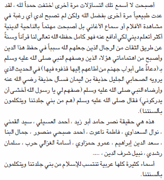 حسنا.. لقد اتهمت قرابة الثمانية أشخاص ( نصفهم على الأقل ينتسبون لديانة الإسلام) بأنهم دعاة على أبواب جهنم, و وضعت الحديث الشريف في موضع لتجبر القارئ على كرههم, ولتلبسهم لباس الكفر, و استعجبت من وجود هذه الاصوات الفاجرة في الصحافة و التلفاز..