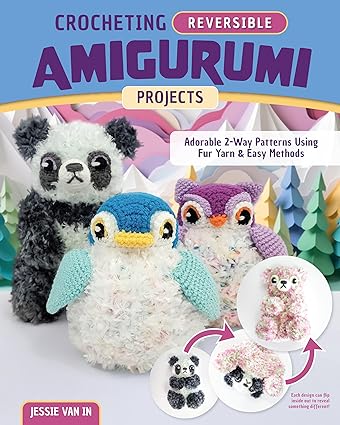 Crocheting Reversible Amigurumi Projects: Adorable 2-Way Furry Animals with Cuddly Detailing by Jessie Van In is currently scheduled for release on February 6 2024. This is a book of inside-out animal crochet patterns created with traditional and faux fur yarns. Filled with tips, tricks, and techniques to build your skills and ensure success for every design, this exciting guide features seven adorable amigurumi patterns that are reversible and transform into a whole new design. From a fox that becomes a cat, a snowball that becomes a penguin, otters that become seashells, and more, these designs are truly one-of-a-kind and offer something special to the craft of amigurumi crochet. Opening with guidance on tools, yarns, and other necessities, also included are technique tutorials for working with faux fur, making a practice piece, counting rows and stitches, and fixing mistakes.