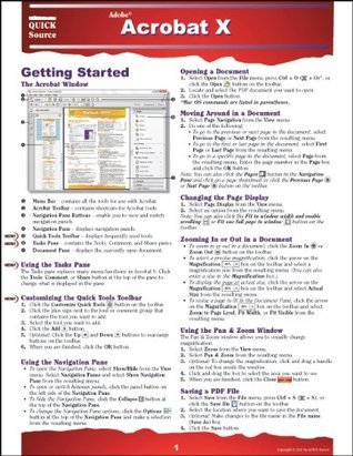 Do you need an easy-to-follow software reference right at your fingertips? Our 6 page, tri-fold guides are the answer. These quick reference guides include step by step instructions to help users to learn software features more quickly, as well as full color screen graphics to highlight important features. Quick Source reference guides also include the software program s NEW features and give you quick access to time saving shortcuts. The Acrobat X Quick Source guide is a clear and concise tool for learning the features in Acrobat X. Features contained in this guide Working with PDFs and PDF Portfolios, Inserting and Extracting Pages, Working with Page Design, Creating and Distributing a Form, Securing your Document, Using Keyboard Shortcuts, and much, much more! If you want a Quick Source Guide, but do not see the title you want, visit us at quicksourceguides.com.