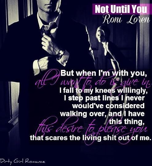As always with the books in this story, not only is NOT UNTIL YOU an erotic story, but it's emotional. We go through the ups and down with both Ian and Cela. Their personal struggles as well as their relationship ones. This was such a well rounded, great story that you won't be able to not fall for these two. Roni Loren gives her characters so much depth that I am helpless but to want to peel back all those layers. And I loved what I found under these!