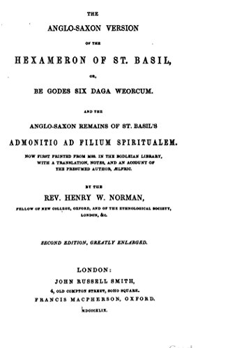 The Anglo-Saxon version of the Hexameron of St. Basil, or, Be Godes six daga weorcum by Henry W. Norman. This book is a reproduction of the original book published in 1849 and may have some imperfections such as marks or hand-written notes.