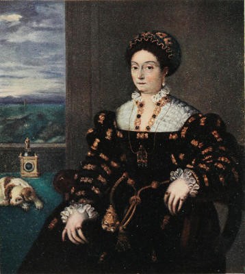 This portrait of the Duchess of Urbino from the Uffizi must not be confused with the portrait of the Duchess in the Pitti Palace. The sitter here is Eleonora Gonzaga, Duchess of Urbino, and the portrait was painted somewhere between the years 1536 and 1538 at a period when the master's art had ripened almost to the point of its highest achievement.